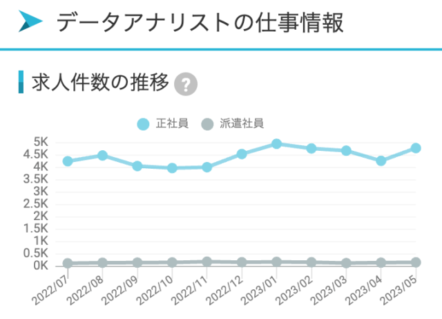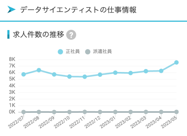 とはいえ、データアナリストの求人数も高い水準で推移しており、しかも上昇傾向です。これはデータサイエンティストにもあてはまります。