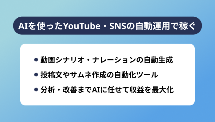 AIを使ったYouTube・SNSの自動運用で稼ぐ